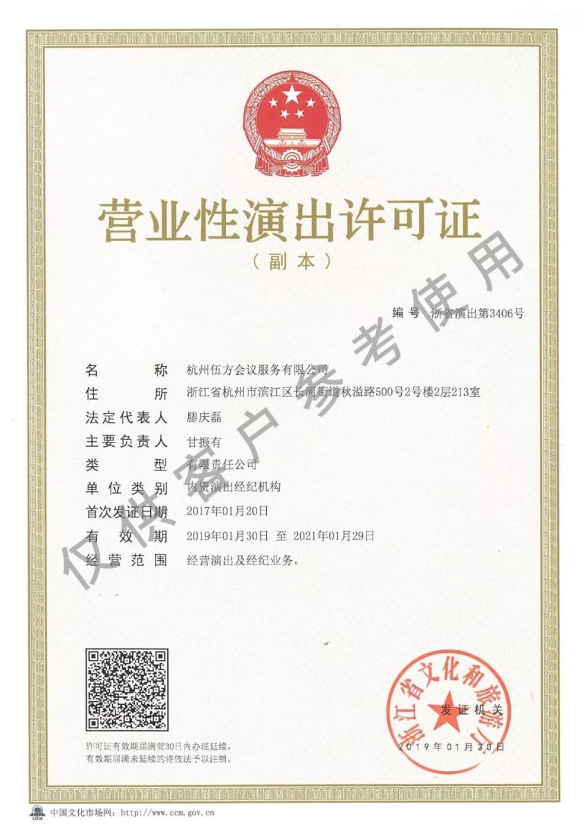 會(huì)議行業(yè)標(biāo)準(zhǔn)《會(huì)議現(xiàn)場(chǎng)服務(wù)規(guī)范》 一級(jí)舞美工程資質(zhì) 浙江省營(yíng)業(yè)性演出許可證 政采云認(rèn)證會(huì)務(wù)供應(yīng)商