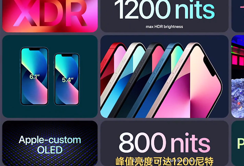 iPhone 13/mini搭載獨(dú)家定制OLED屏幕,平均亮度達(dá)到800nit,理論峰值亮度達(dá)到1200nit,支持HDR10顯示;蘋果獨(dú)有陶瓷保護(hù)層覆蓋,最高支持IP68級(jí)防塵防水;后置雙攝鏡頭采用對(duì)角線設(shè)計(jì),相比iPhone12系列辨識(shí)度更高。顏色上,iPhone13 mini、iPhone13有5種配色,分別是星光色、午夜色、藍(lán)色、粉色、紅色,iPhone13 Pro和iPhone13 Pro Max則只有4中配色,分別是銀色、石墨色、金色和遠(yuǎn)峰藍(lán)色。